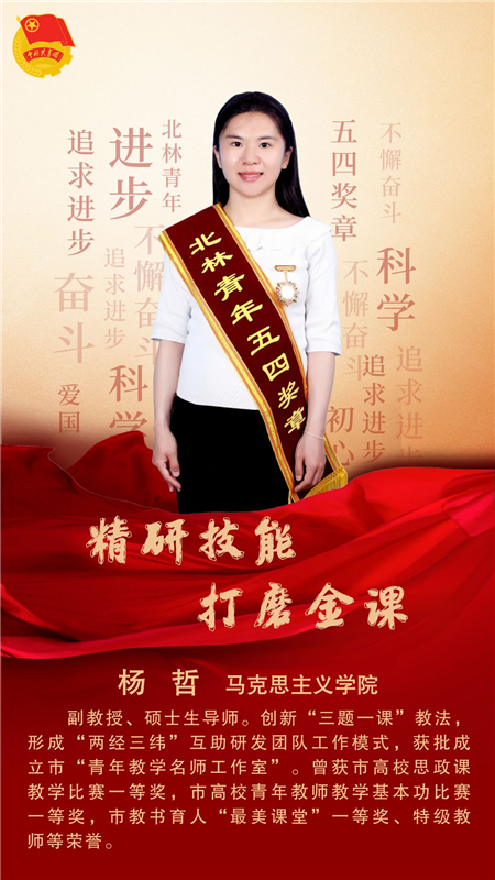 北林青年“五四獎章”是我校共青團最高榮譽。經過基層推薦、資格審查、材料評審、現場答辯等環節,鈕世輝、楊哲、房良、夏蕓楓、戴璐、甄恒、賈康寧、奐圣鑫、杜安娜、范志輝等十名師生獲評首屆北林青年“五四獎章”,以下是獲獎者簡介。