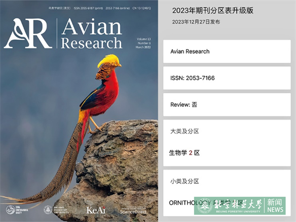 日前,《2023年中國科學(xué)院文獻(xiàn)情報中心期刊分區(qū)表》正式發(fā)布。我校主辦的兩本英文期刊表現(xiàn)亮眼,《森林生態(tài)系統(tǒng)(英文)》(Forest Ecosystems)蟬聯(lián)入選農(nóng)林科學(xué)大類1區(qū),林學(xué)小類1區(qū);《鳥類學(xué)研究(英文)》(Avian Research)入選生物學(xué)大類2區(qū),鳥類學(xué)小類2區(qū)。