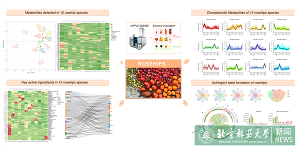 近日,園林學院于超教授團隊在《Journal of The Science of Food and Agriculture》(中國科學院二區,IF=4.1)及《Food Chemistry》(中國科學院一區Top,IF=8.8)連續發表2篇研究論文,深入揭示了薔薇屬植物果實次生代謝物的組成及品質差異,并對其呈色機制和澀味候選物質進行初步探索,結果為薔薇屬植物花果兼用及果實的品質改良和進一步開發利用提供了重要的理論支撐。