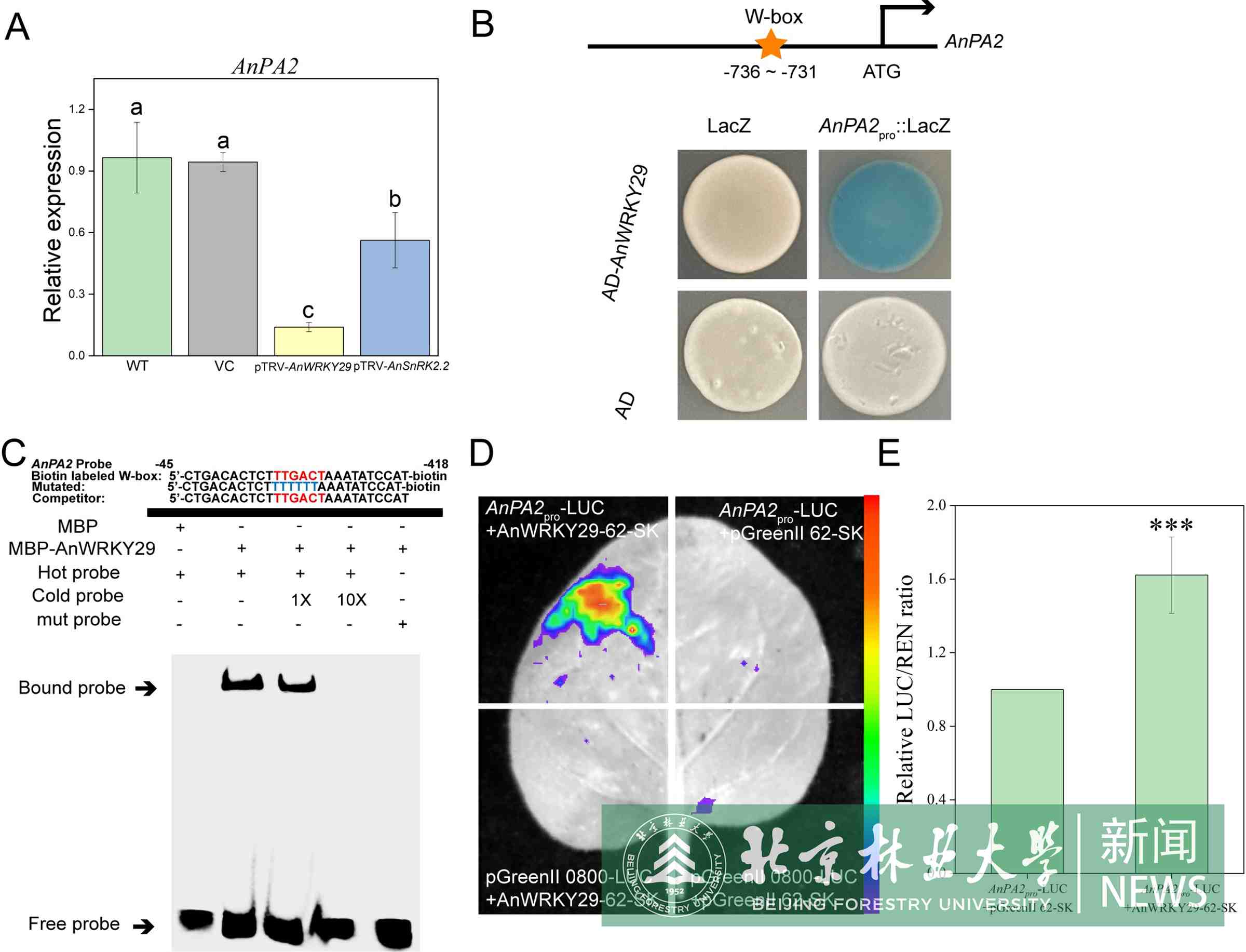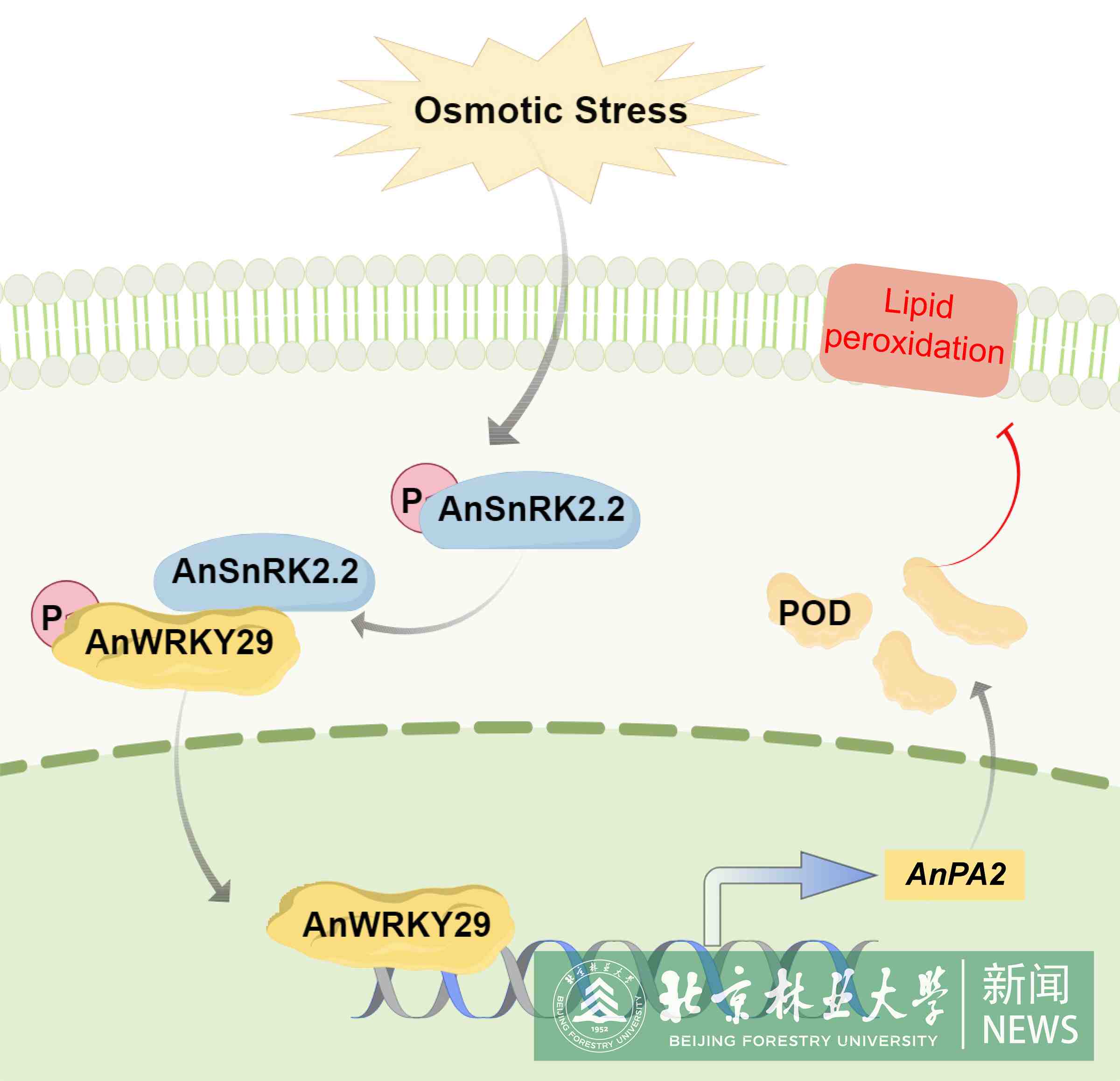 此外,由AnPA2編碼的38.5 kDa過氧化物酶,屬于植物過氧化物酶III類,對減輕新疆沙冬青中由H2O2誘導的膜脂過氧化起著關鍵作用。該研究揭示了AnWRKY29可以直接調控AnPA2的轉錄,從而影響過氧化物酶的合成。