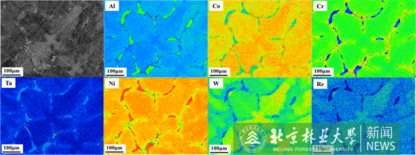 圖2 鎳基單晶高溫合金枝晶組織EPMA元素分布
