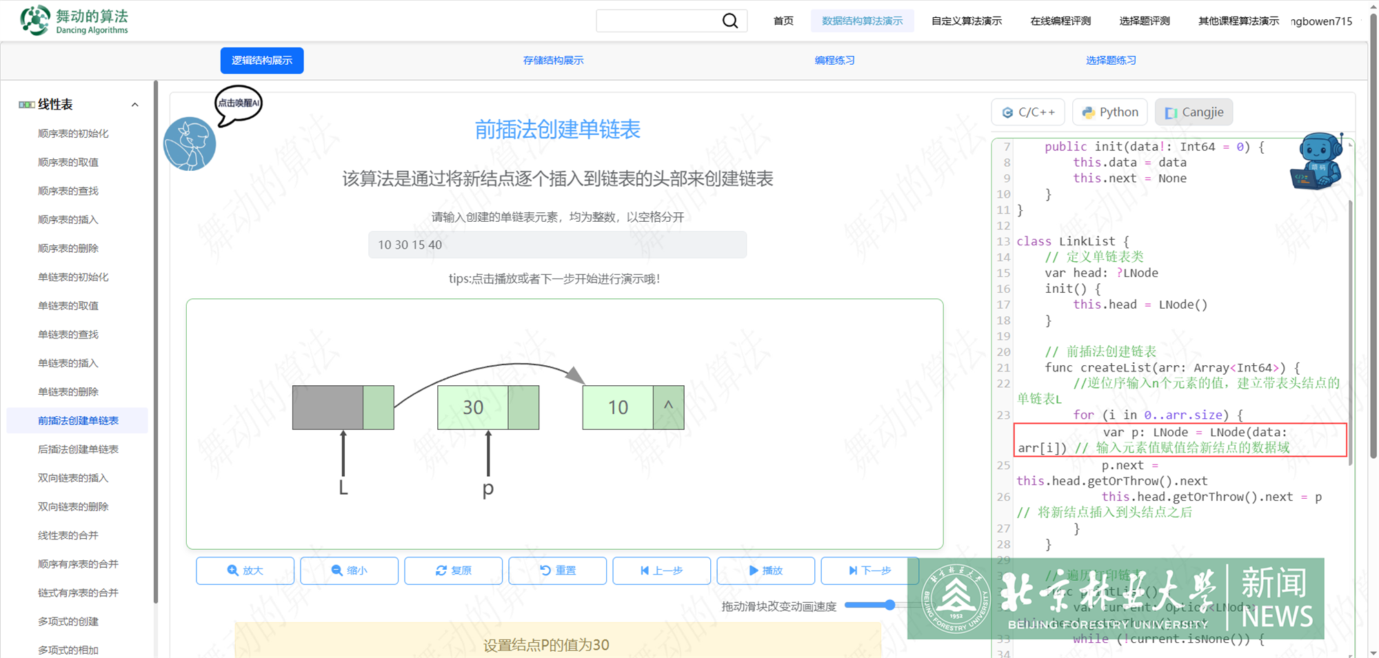 李冬梅教授團(tuán)隊(duì)在“數(shù)據(jù)結(jié)構(gòu)”教學(xué)領(lǐng)域深耕多年,其主編的《數(shù)據(jù)結(jié)構(gòu)(C語言版)》作為“十二五”本科國家級規(guī)劃教材,累計(jì)銷量100余萬冊,被國內(nèi)500余所高校選用。依托深厚的教學(xué)積淀與豐富的教學(xué)資源,創(chuàng)新融合可視化及人工智能技術(shù),“舞動(dòng)的算法”打造了算法動(dòng)態(tài)演示、在線編程評測與智能學(xué)習(xí)助手三大核心功能。