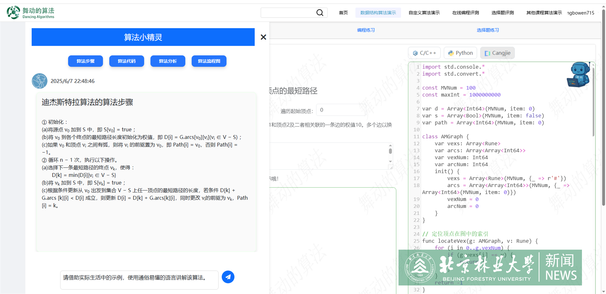 在當(dāng)前國家亟需發(fā)展自主知識(shí)產(chǎn)權(quán)、培養(yǎng)創(chuàng)新型科技人才的背景下,該系統(tǒng)作為2025年首批華為產(chǎn)學(xué)合作協(xié)同育人項(xiàng)目“數(shù)據(jù)結(jié)構(gòu)(倉頡語言版)課程建設(shè)”的重要成果之一,不僅為構(gòu)建自主可控的國產(chǎn)技術(shù)生態(tài)體系提供了寶貴的實(shí)踐經(jīng)驗(yàn),還為破解 "卡脖子" 技術(shù)難題提供了人才保障,更以 AI 賦能教育的新范式,為我國高等教育數(shù)智化轉(zhuǎn)型貢獻(xiàn)了“北林智慧”。