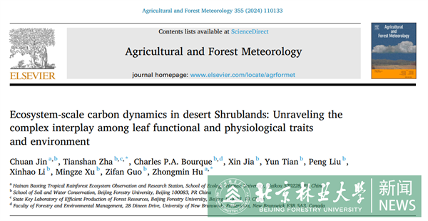 近日,水保學院鹽池站查天山教授帶領的生態監測與模擬團隊在農林領域頂級期刊Agricultural and Forest Meteorology,發表了關于荒漠生態系統碳循環過程與調控機理的研究論文“Ecosystem-scale carbon dynamics in desert Shrublands: Unraveling the complex interplay among leaf functional and physiological traits and environment”。