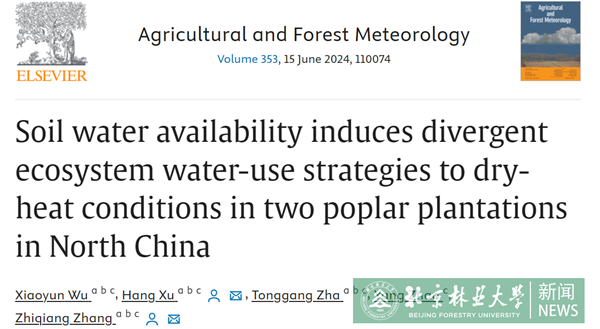 近日,我校水保學院張志強教授團隊在農林科學領域頂級期刊Agricultural and Forest Meteorology在線發表了學術論文“Soil water availability induces divergent ecosystem water-use strategies to dry-heat conditions in two poplar plantations in North China”,水保學院博士生吳小云為論文第一作者,青年教師許行博士、張志強教授為共同通訊作者。