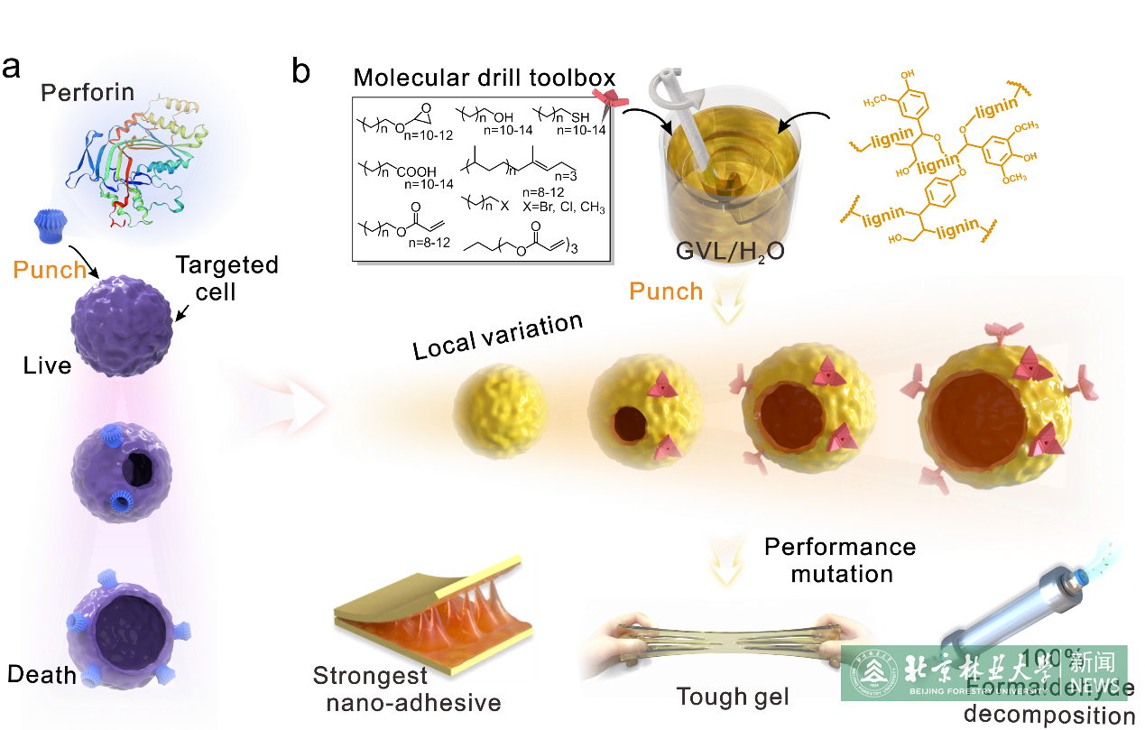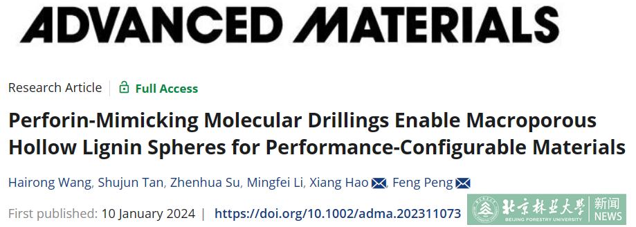 近日,材料科學與技術學院彭鋒教授課題組在材料領域頂尖期刊《Advanced Materials》(IF="29.4)發表了題目為“Perforin-Mimicking" Molecular Drillings Enable Macroporous Hollow Lignin Spheres for Performance-Configurable Materials”的研究論文。