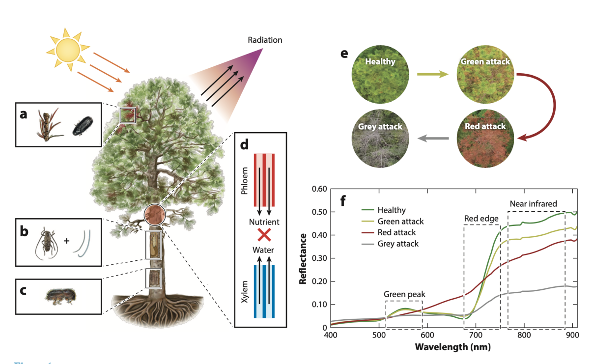 林木鉆蛀性害蟲(chóng)危害隱蔽、癥狀滯后,常規(guī)手段發(fā)現(xiàn)時(shí)往往已連片成災(zāi),但遙感技術(shù)具有實(shí)現(xiàn)林木鉆蛀性害蟲(chóng)早期監(jiān)測(cè)的潛力與可能。北京林業(yè)大學(xué)駱有慶教授研究團(tuán)隊(duì)的論文“Early Monitoring of Forest Wood-Boring Pests with Remote Sensing”,近期已在昆蟲(chóng)學(xué)國(guó)際頂級(jí)期刊《Annual Review of Entomology》(IF="22.682)上在線(xiàn)發(fā)表。