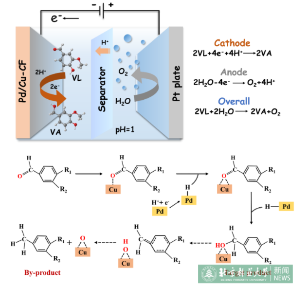 日前,材料學(xué)院和理學(xué)院課題組合作在林木生物質(zhì)衍生物電化學(xué)催化加氫領(lǐng)域取得新進(jìn)展。苯甲醛類(lèi)和糠醛類(lèi)物質(zhì)分別是林木生物質(zhì)木質(zhì)素和綜纖維素組分的主要衍生物,作為原料可以生產(chǎn)多種高附加值的精細(xì)化學(xué)品和活性物質(zhì),用于替代石化資源生產(chǎn)生物基材料和生物化工產(chǎn)品。與傳統(tǒng)化學(xué)加氫還原方法相比,電化學(xué)還原方法以水作為氫源,具有反應(yīng)條件溫和、過(guò)程可控性好和能耗較低等優(yōu)勢(shì)。新型高效率催化劑的制備和反應(yīng)體系的設(shè)計(jì)是實(shí)現(xiàn)林木衍生物電化學(xué)高效轉(zhuǎn)化的關(guān)鍵。