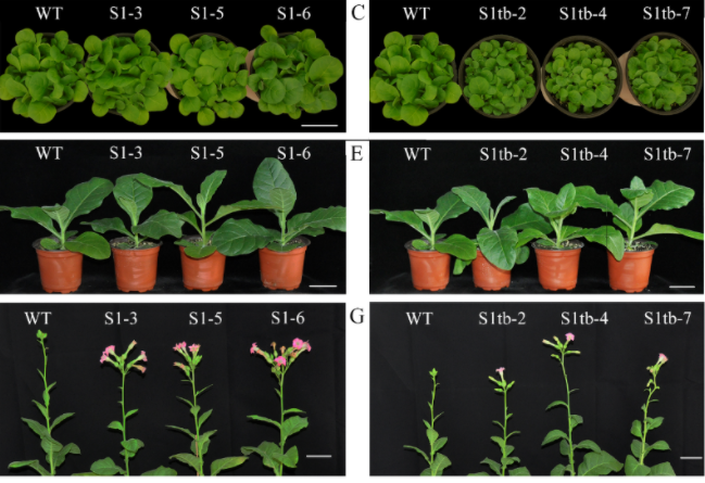 圖1. 梅花 P mSBP1 和 P mSBP1tb 基因在煙草中過(guò)表達(dá)表型 圖2. 梅花 P mSBP6 基因在煙草中過(guò)表達(dá)表型 圖3. 梅花PmSBP1與 P mSOC1s 啟動(dòng)子互作 通過(guò)對(duì)轉(zhuǎn)基因煙草中開(kāi)花相關(guān)基因定量分析發(fā)現(xiàn), 本研究系統(tǒng)研究了梅花 PmSBP1 / 6 基因生物學(xué)功能, 而 P mSBP1tb 的過(guò)表達(dá)調(diào)控開(kāi)花不受光周期的影響