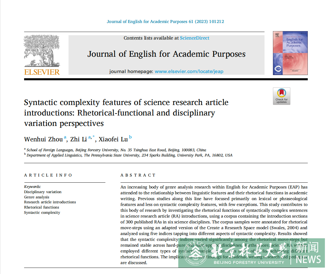 外語(yǔ)學(xué)院在語(yǔ)言學(xué)高水平國(guó)際期刊上發(fā)表科研論文