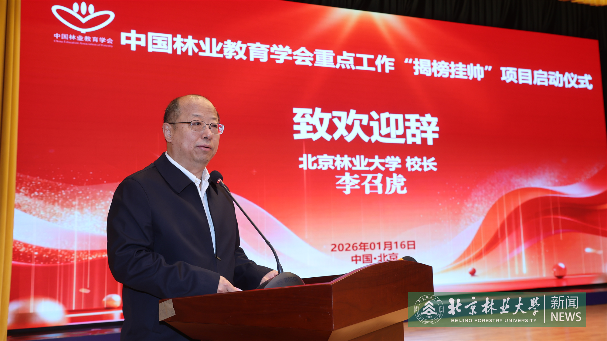 李召虎作為院校代表致辭。他指出,“揭榜掛帥”機制為全國林草教育工作者搭建了一個共謀發展、共克難關的高端平臺。北林大將把承擔“揭榜掛帥”項目作為服務國家林草戰略、推動“雙一流”建設的重要抓手,加強組織領導,統籌優質資源,全力做好保障工作,與各兄弟單位緊密協作,積極推動成果轉化,力爭在理論創新、模式構建、標準制定與實踐應用上取得突破,切實將研究優勢轉化為育人優勢和發展優勢,共同為推動林草教育現代化、服務教育強國和美麗中國建設貢獻力量。