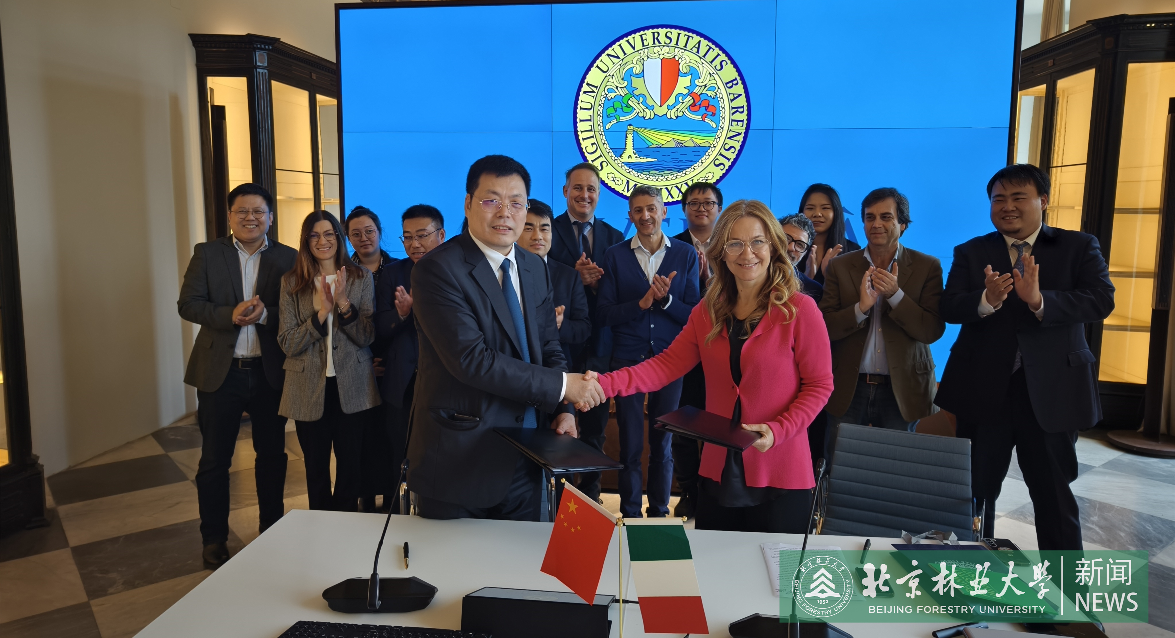 在意大利,安黎哲與巴里大學(xué)代表簽署了諒解備忘錄。代表團(tuán)與意大利巴里大學(xué)土壤植物和食品科學(xué)系開展座談,并會見了四名我校在該系就讀的校友。座談會上,安黎哲表示,北京林業(yè)大學(xué)作為中國最高綠色學(xué)府,矢志不渝推動全球綠色發(fā)展,希望通過此次出訪,開啟深度務(wù)實合作,共同推進(jìn)雙方國際化辦學(xué)工作。意方介紹了土壤植物和食品科學(xué)系的發(fā)展情況,表達(dá)了合作需求,提出將在雙學(xué)位聯(lián)合培養(yǎng)、學(xué)者互訪、聯(lián)合科研等方面聚焦合作。意方表示,有意愿于2024年與北京林業(yè)大學(xué)聯(lián)合舉辦主題為“Smart Solutions for Sustainable and Healthy Cities”的國際會議,并將于今年10月組團(tuán)前往我校參加會議。