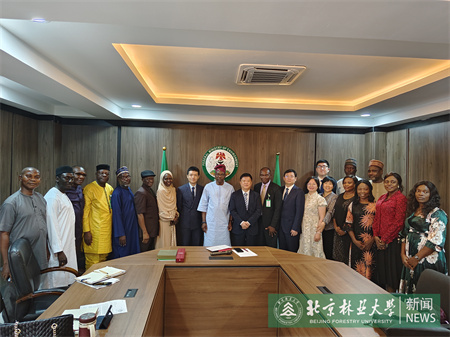 代表團拜會了尼日利亞環境部部長,與尼日利亞環境部林業司、林科院、尼日利亞企業家協會、尼日利亞尼中委員會以及5個林業資源豐富的州議員開展座談。座談會上,王洪元表示,北京林業大學作為中國最高綠色學府,在習近平生態文明思想指引下,不斷推動全球綠色發展,擁護聯合國2030可持續發展目標,我校將與尼方有志之士一起為建設好人類美好家園作出更大貢獻。尼方介紹了當地林業整體發展狀況,表達了與我校開展務實合作的需求,希望我校在幫助其發展竹產業、開展生態修復、荒漠化防治、野生動物保護、國家公園建設、林產品貿易等領域,聚焦能力建設、學者互訪、聯合科研等方面加強合作。