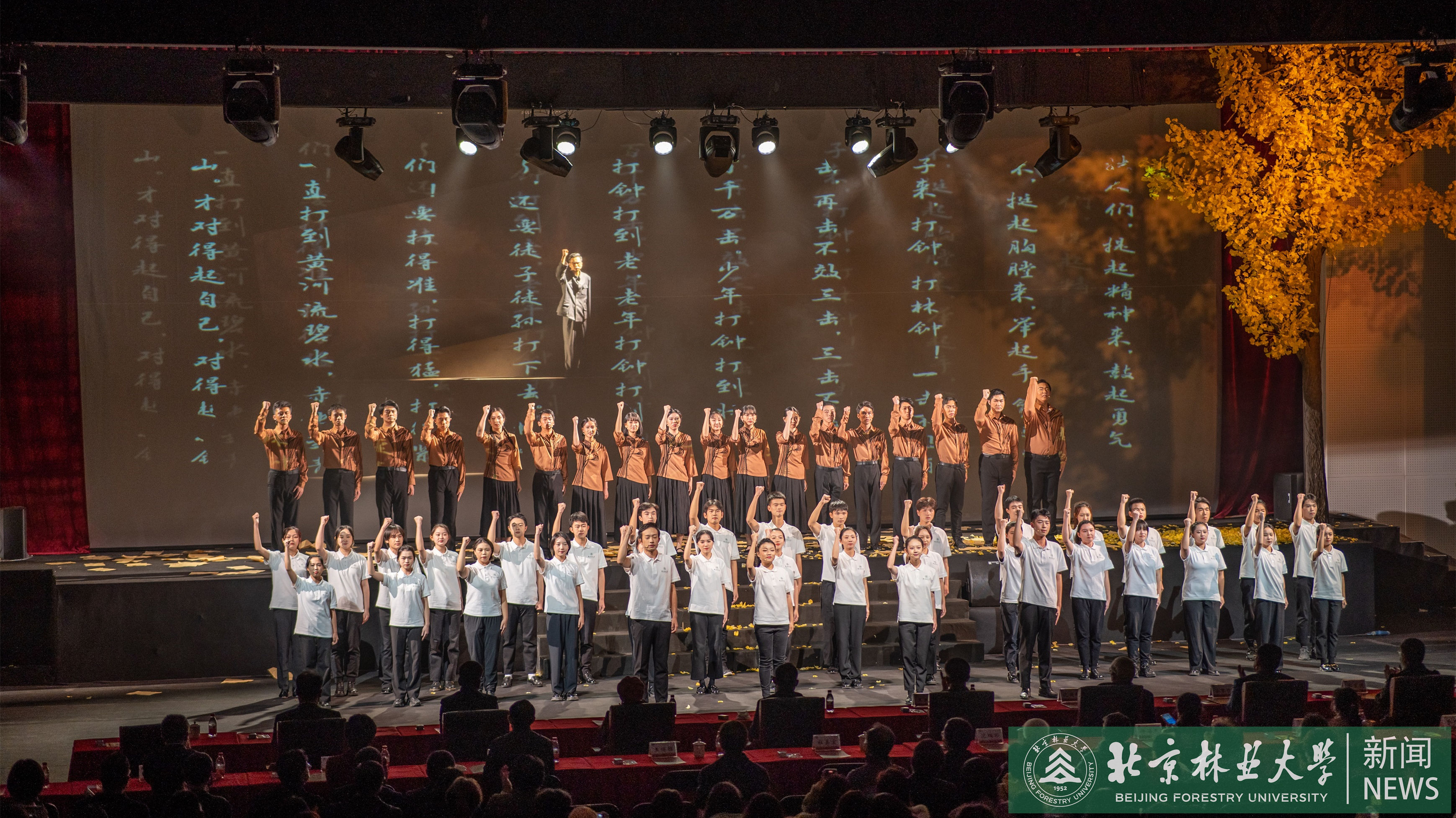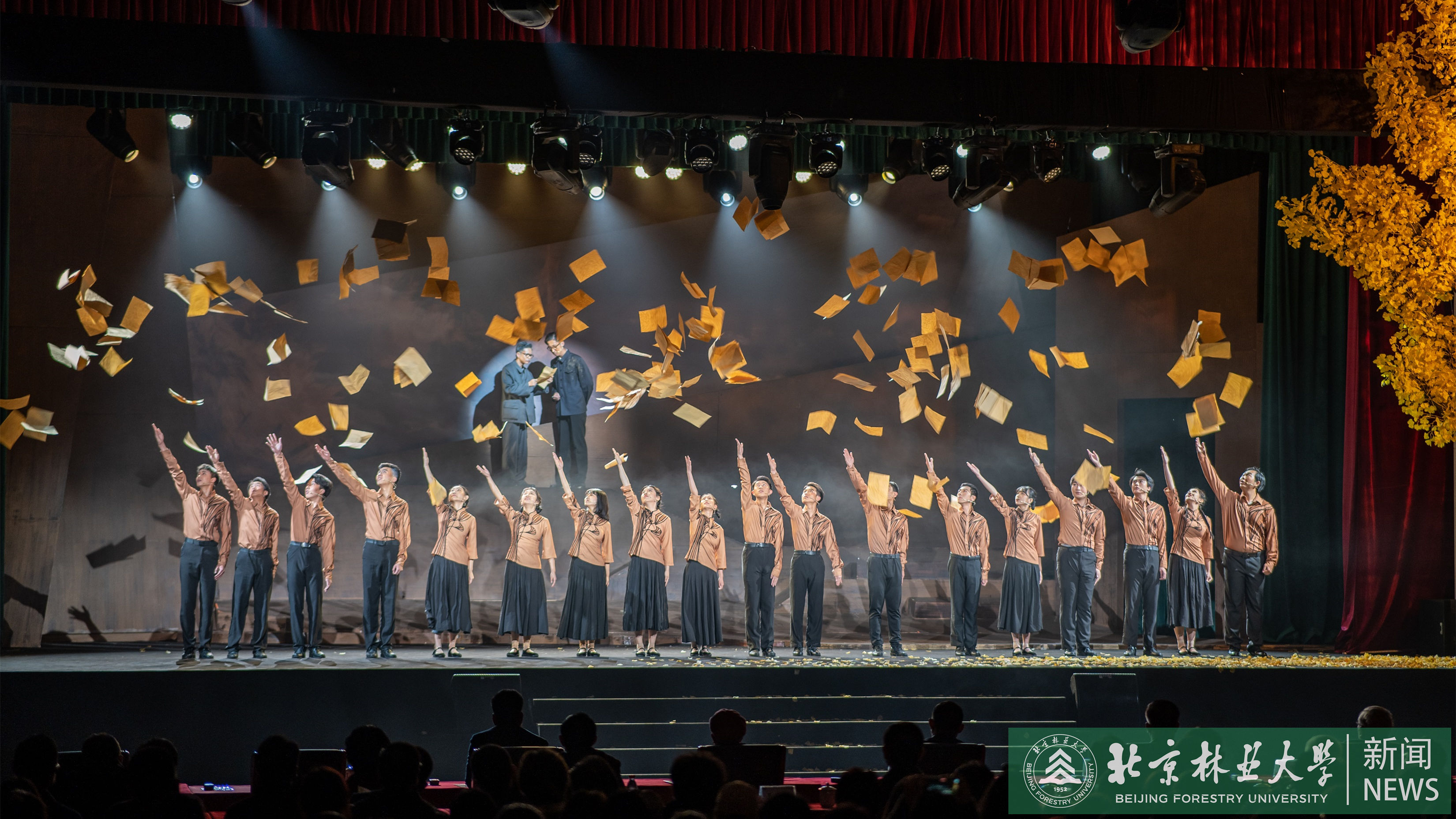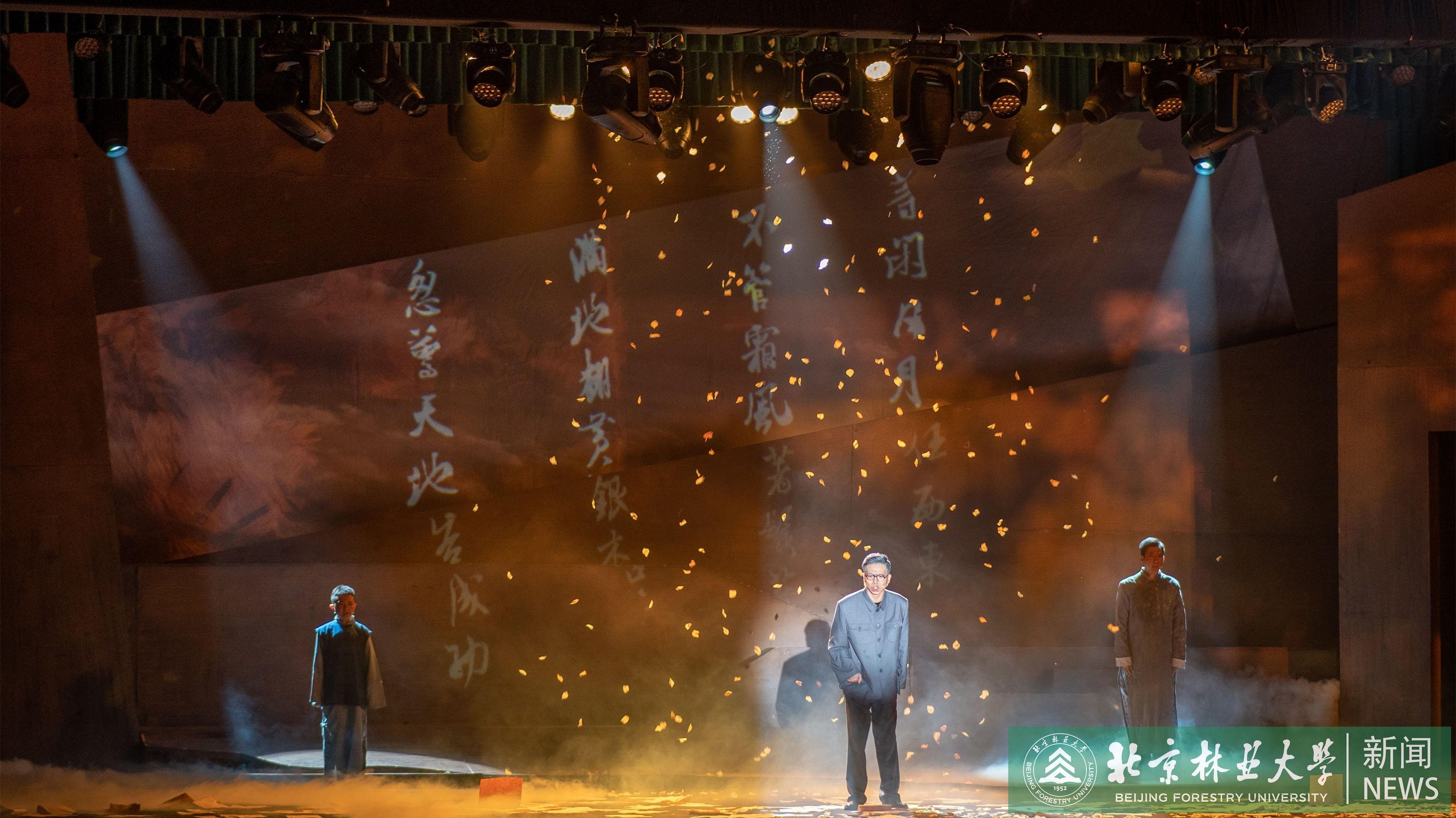 原創話劇《梁?!肥俏倚8鶕轮袊谝蝗瘟謮ú坎块L梁希先生生平創作而成,集中講述了梁希先生為祖國山河辛勤奉獻的一生,生動展現了以梁希先生為代表的老一輩林業人愛國奉獻、矢志林業的理想信念,崇德修身、明禮誠信的道德素養,嚴謹求真、開拓創新的科學態度,堅忍不拔、砥礪奮斗的高尚品格。七十周年校慶紀念版《梁?!穼∧课猜暺聝灮{整,融入了建校70周年的特別環節。知名院士、校友、師生共同告慰梁希先生,展現了北林師生70年來始終投身生態文明建設和美麗中國建設的責任與擔當。在吟誦《林鐘》復刊詞收尾處,增加了校慶七十周年紀念版視頻,完成全劇意蘊的升華。