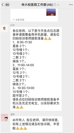 “需要的話給我打電話,我馬上到”,他對江新說。5點半,王磊的手機亮了起來,看到江新的“進校”,他絲毫沒有猶豫,秒回了一句“馬上到!”,就以最快的響應速度趕往學校,承擔起消殺環采的安排和隔離轉運的校內外溝通協調工作。