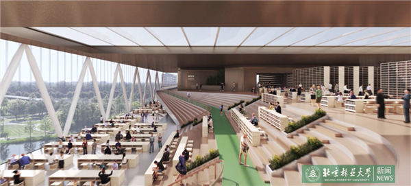 五是打造活力健康的樂活北林。規劃方案構建城校協同、多維度活力共享校園。豐富便捷的生活大街、柔性校園邊界實現與校園外部滲透交織。3.5公里的陽光步道系統,敷設了濱水長廊和林間曲徑等多元慢行系統。園林化的休憩空間,讓師生在晨讀中聆聽風聲、在落日里享林下學堂。