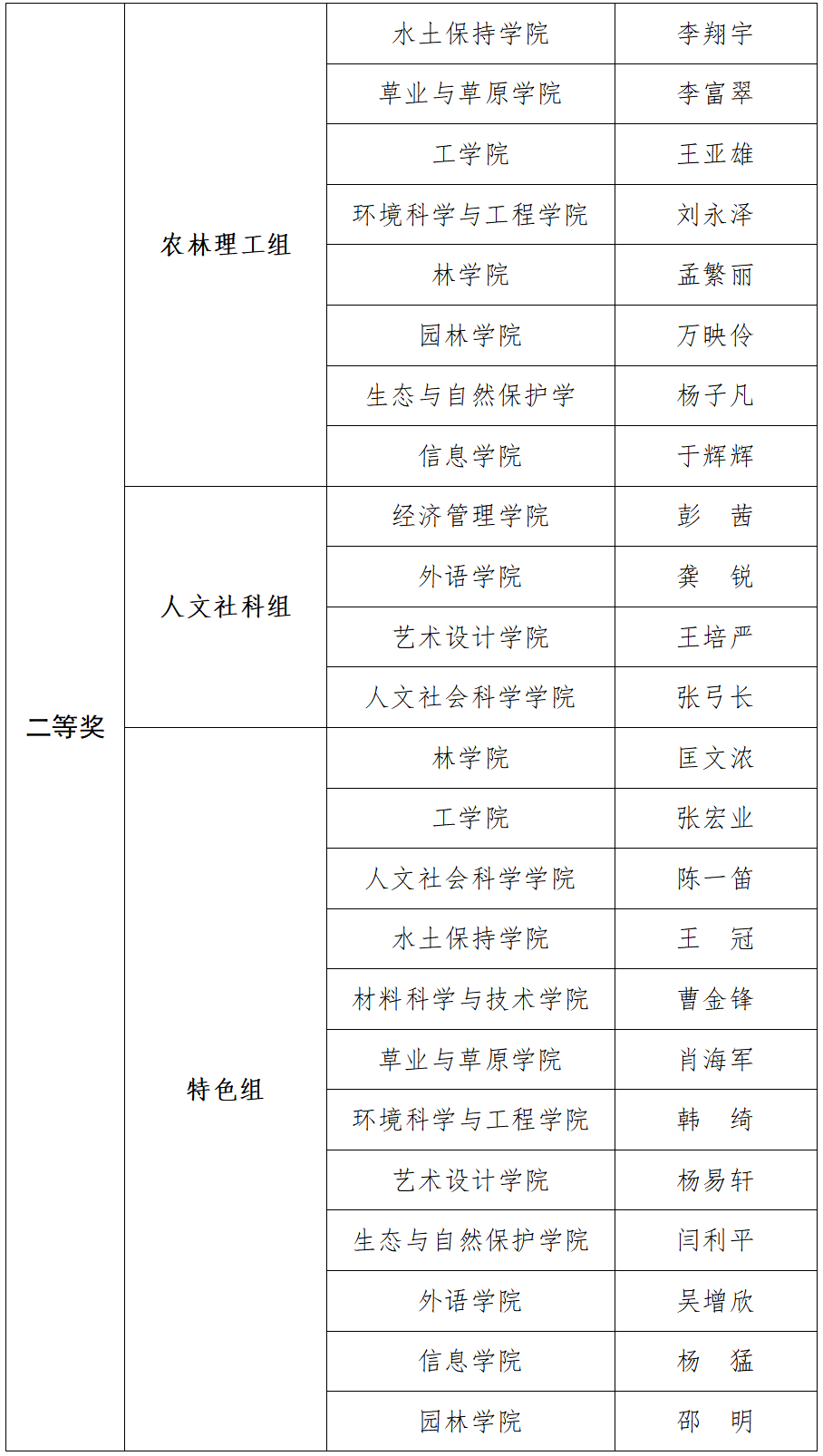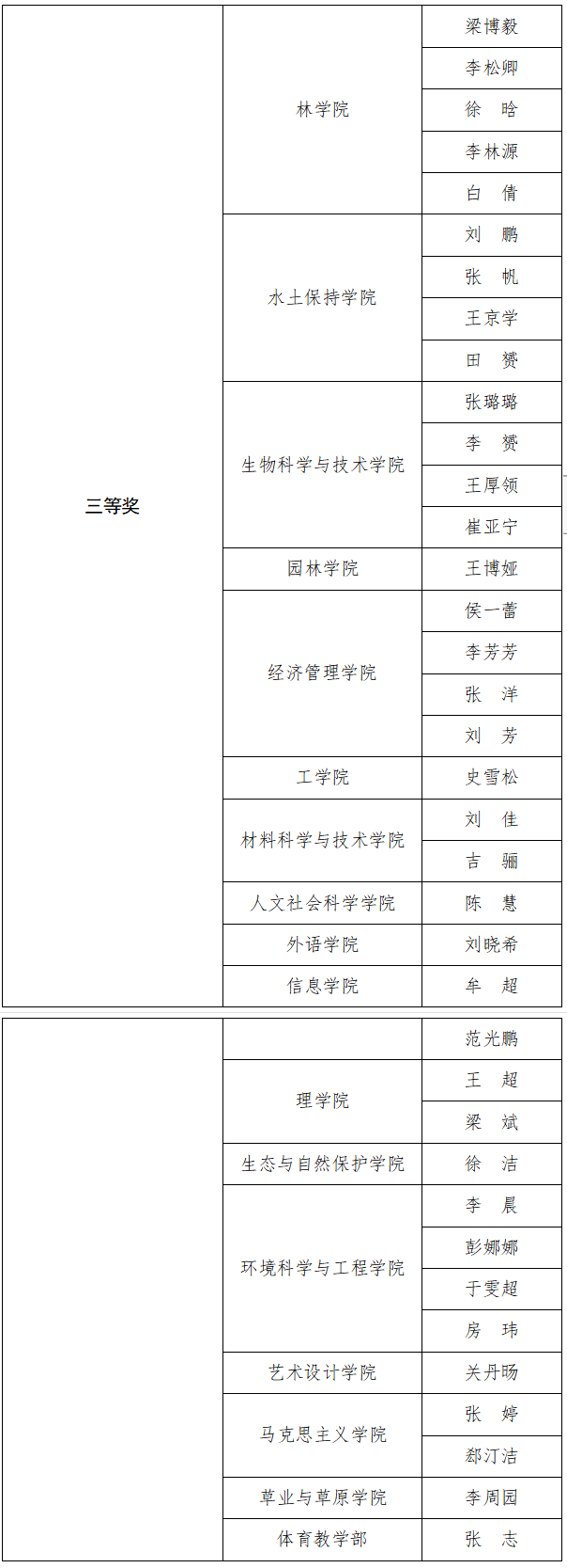 附:北京林業大學第十八屆青年教師教學基本功比賽獲獎名單