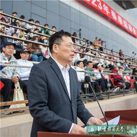 安黎哲致辭。他指出,近年來(lái),校黨委高度重視體育工作,把體育作為高水平人才培養(yǎng)體系建設(shè)的重要內(nèi)容,作為提高師生健康水平的重要途徑,作為推進(jìn)校園文化建設(shè)的重要抓手。過(guò)去的一年,我校群眾性體育活動(dòng)蓬勃開展,廣大師生積極參與體育活動(dòng)。我校學(xué)子在北京冬奧會(huì),各項(xiàng)全國(guó)、北京市比賽中取得突出成績(jī),充分展示了北林學(xué)子為國(guó)奉獻(xiàn)的使命擔(dān)當(dāng)和健康向上的精神風(fēng)貌。他希望,廣大師生要發(fā)揚(yáng)體育精神、熱心體育事業(yè)、參與體育活動(dòng),共同營(yíng)造健康向上、團(tuán)結(jié)友愛(ài)的校園體育氛圍,以強(qiáng)健的體魄、堅(jiān)定的意志和團(tuán)結(jié)協(xié)作的精神為生態(tài)文明建設(shè)和綠色科技創(chuàng)新做出更大貢獻(xiàn)。
