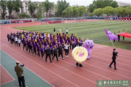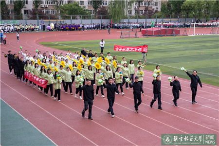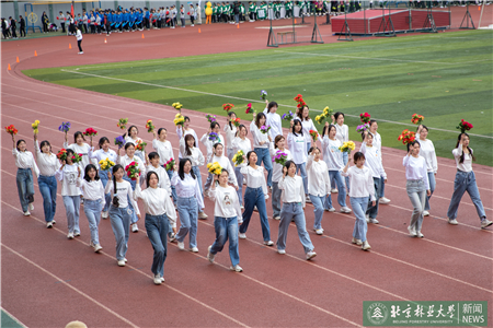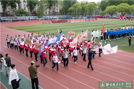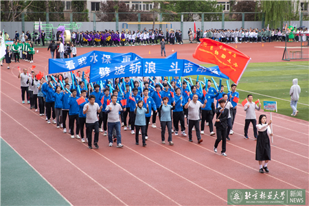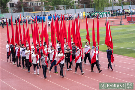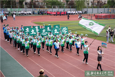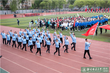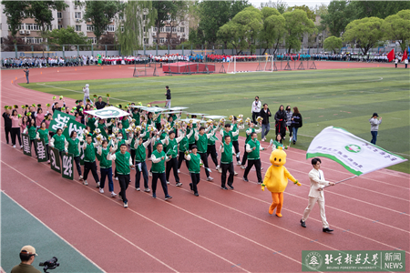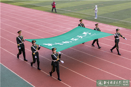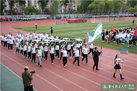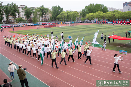 開幕式現(xiàn)場(chǎng)進(jìn)行了迎國(guó)旗、校旗、校徽儀式和運(yùn)動(dòng)員入場(chǎng)式。伴隨著激昂的《運(yùn)動(dòng)員進(jìn)行曲》,運(yùn)動(dòng)員代表們?cè)邗r花隊(duì)和彩旗隊(duì)的帶領(lǐng)下,身著統(tǒng)一的服裝,邁著鏗鏘有力的步伐入場(chǎng),堅(jiān)毅的腳步展現(xiàn)著北林師生朝氣蓬勃的精氣神。