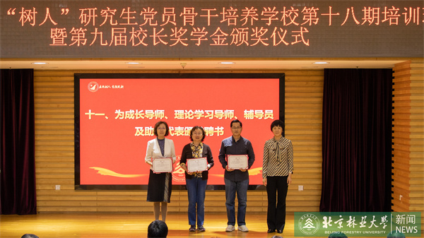 孫信麗宣讀了《關于表彰第九屆校長獎學金獲得者的決定》,并為第十八期“樹人”學校培訓班成長導師、理論學習導師、輔導員及助教代表頒發(fā)聘書。