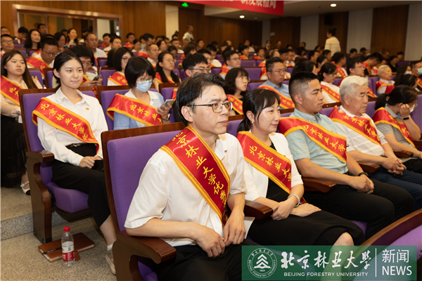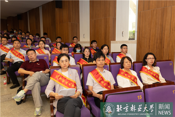 王洪元代表校黨委向我校奮戰(zhàn)在各個崗位的全體共產(chǎn)黨員致以誠摯問候,向受到表彰的先進(jìn)集體和優(yōu)秀黨員表示熱烈祝賀,向“光榮在黨50年”老同志老黨員致以崇高敬意。他指出,過去一年,全校各級黨組織和廣大黨員高舉習(xí)近平新時代中國特色社會主義思想偉大旗幟,深入學(xué)習(xí)貫徹黨的二十大精神,讓黨旗在構(gòu)建“一校兩區(qū)”新發(fā)展格局生動實(shí)踐中高高飄揚(yáng)。全校各級黨組織高站位謀劃、高標(biāo)準(zhǔn)組織、高質(zhì)量推進(jìn)主題教育,引領(lǐng)師生黨員在凝心鑄魂中主動擔(dān)當(dāng)強(qiáng)國有我時代使命;不折不扣落實(shí)習(xí)近平總書記勉勵語,構(gòu)建“部局市”共建新機(jī)制,加強(qiáng)習(xí)近平生態(tài)文明思想研究闡釋,推進(jìn)全國重點(diǎn)實(shí)驗(yàn)室建設(shè),成立全國首家國家公園學(xué)院,全力支持蒙古國“種植十億棵樹”計劃,更好服務(wù)“黨之大事”“國之大者”;持續(xù)推進(jìn)黨的質(zhì)量建設(shè)工程,不斷健全高質(zhì)量黨建引領(lǐng)事業(yè)高質(zhì)量發(fā)展的工作體系,加大優(yōu)秀年輕干部和人才培養(yǎng)力度,持續(xù)營造“嚴(yán)的氛圍”、深耕“改的文化”;高標(biāo)準(zhǔn)履行守護(hù)師生生命健康安全政治責(zé)任,統(tǒng)籌抓好疫情防控和安全穩(wěn)定各項(xiàng)工作;始終牢記全心全意為人民服務(wù)宗旨意識,統(tǒng)籌抓好雄安校區(qū)規(guī)劃建設(shè)等重大民生工程,建成校史館,啟動建設(shè)林科實(shí)驗(yàn)樓,穩(wěn)步推進(jìn)“央保入軌”工作,成功獲批海淀區(qū)第37個基礎(chǔ)教育集團(tuán)。