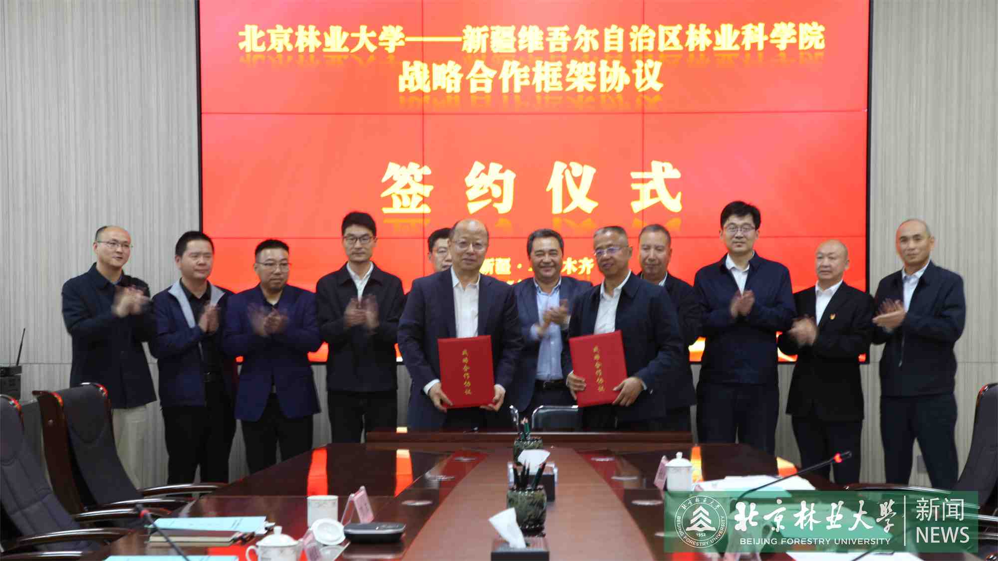 日前,我校與新疆維吾爾自治區林業科學院在烏魯木齊簽署戰略合作框架協議。校長李召虎與新疆林科院黨委書記王天斌代表雙方簽約,自治區林草局黨委副書記、局長托乎提·熱合曼出席座談,新疆林科院院長陸海主持會議。